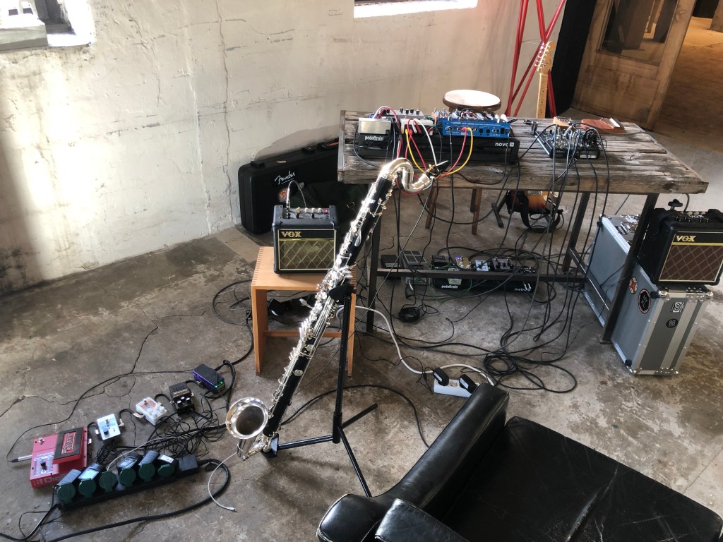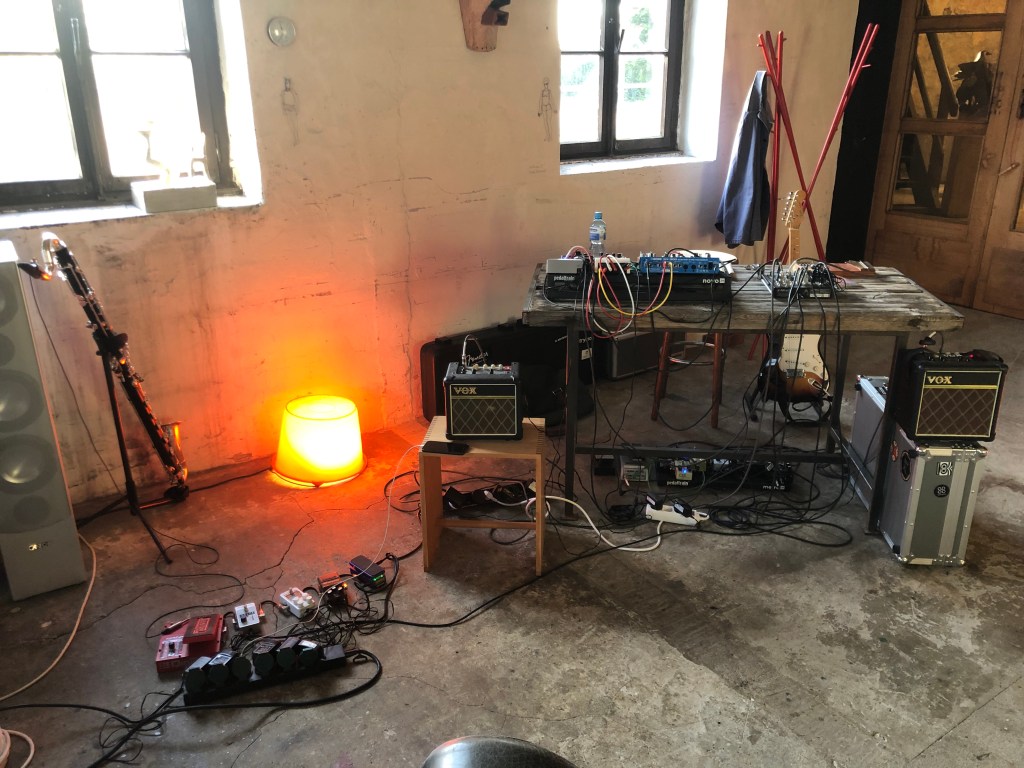Over the last year I’ve recorded quite a few of the semi-regular sessions I’ve hosted with artist and experimental musician, Angelika Höger. This album, Duette (Duets) – now available to download on Bandcamp – is a small selection chosen and edited down from hours of recordings capturing Angelika and I exploring the possibilities of improvisation between acoustic and electric instrumentation. Angelika uses a vast array of instruments and sound sources, while I use synths, guitars etc. The studio was very much a live instrument here. In a couple of places I’ve used more than one session to complete a track, but only as a means of connecting passages which seemed related in some way (this is reflected in the titles)https://jonesisdying.bandcamp.com/album/duette. Only one track (received any overdubs over the live original. It was a lot of material, but I think I’ve extracted the essence of what this way of playing can produce when the wind blows in the right direction.