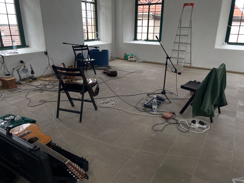 The final track is formed from recordings made recently in the Alten Synagoge des Kunstvereins Oerlinghausen (see image above). The track creates a soundscape from the sounds of Angelika’s creations coming to life as well as ambient noise from the amazing environment (truly one of the greatest sounding spaces I’ve heard in a long while). It also contains some music taped there during the building of Angelika’s exhibition, Im Raum, which runs from 31:8:25 – 12:10:25.